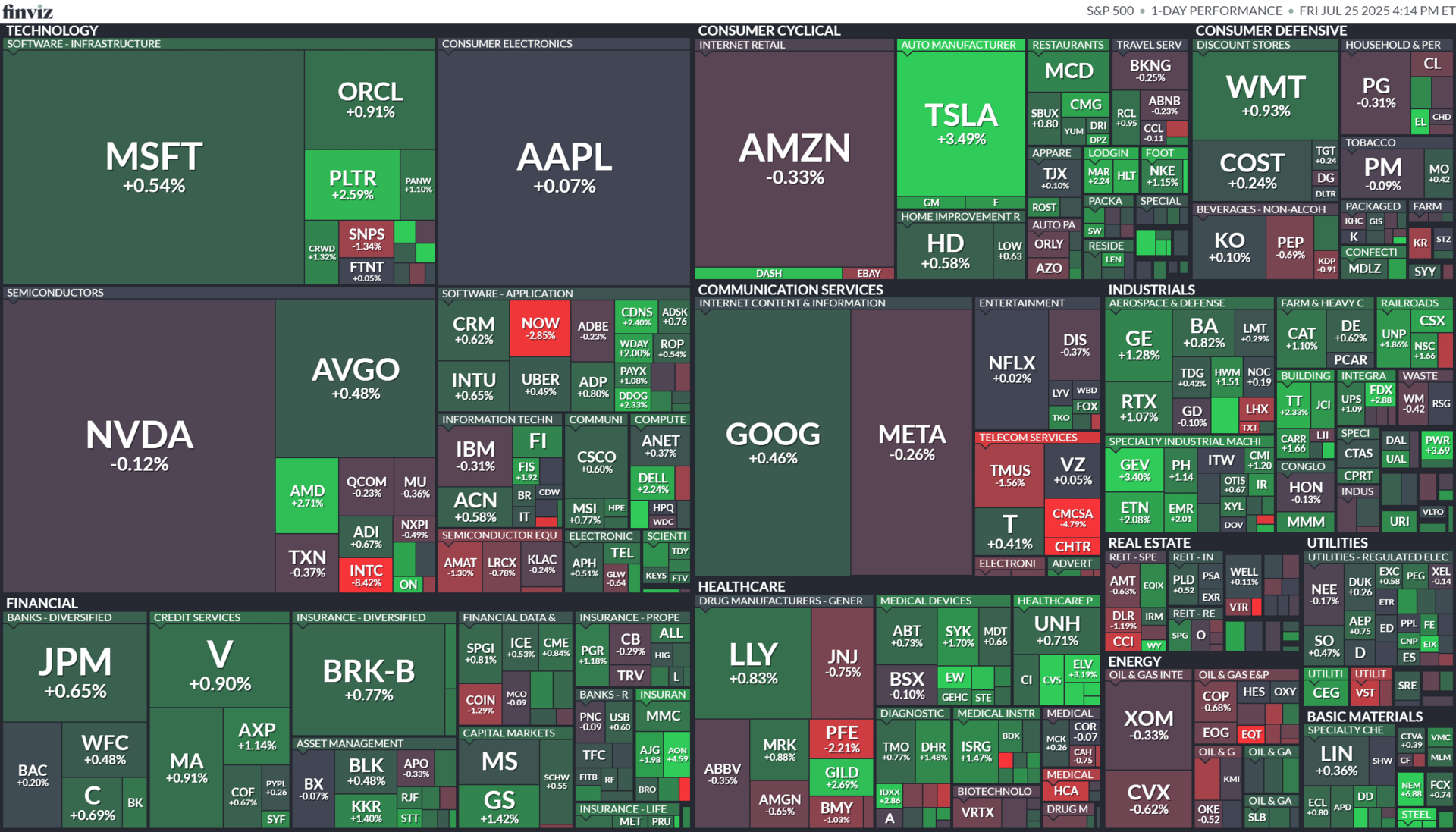 MARKET RECAP → All three major indexes rose throughout Friday, boosted by earnings successfully beating expectations and recent trade deals as the tariff deadline approaches. The S&P 500 (VOO) posted yet another record close, bumping the tally up to 13 record closes in 2025.