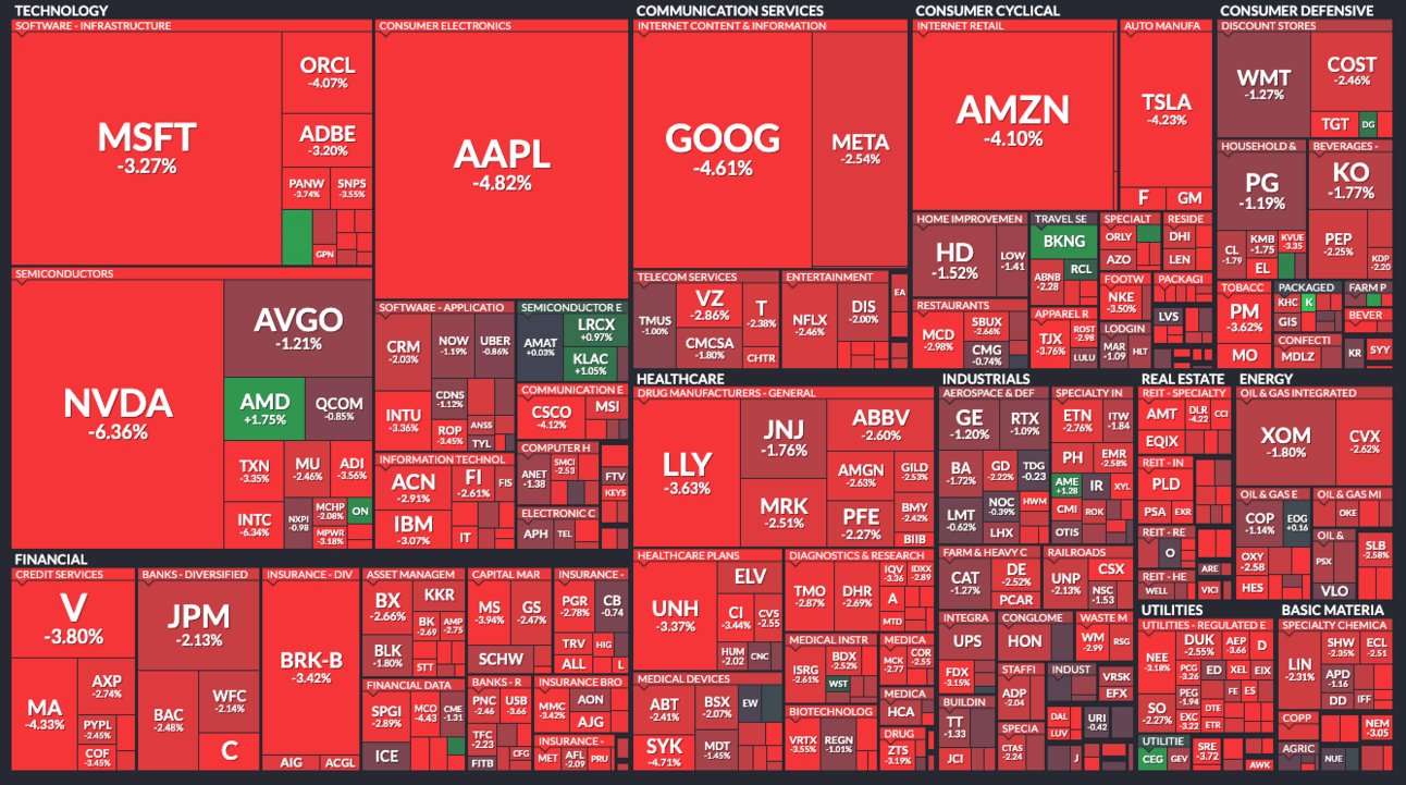 📈 VIX Surge to 2020 Levels: The VIX, Wall Street's famed "fear gauge," surged over 50%, hitting its highest level since June 2020. This spike mirrored the widespread panic across global markets, with significant drops in U.S., European, and Japanese indices.