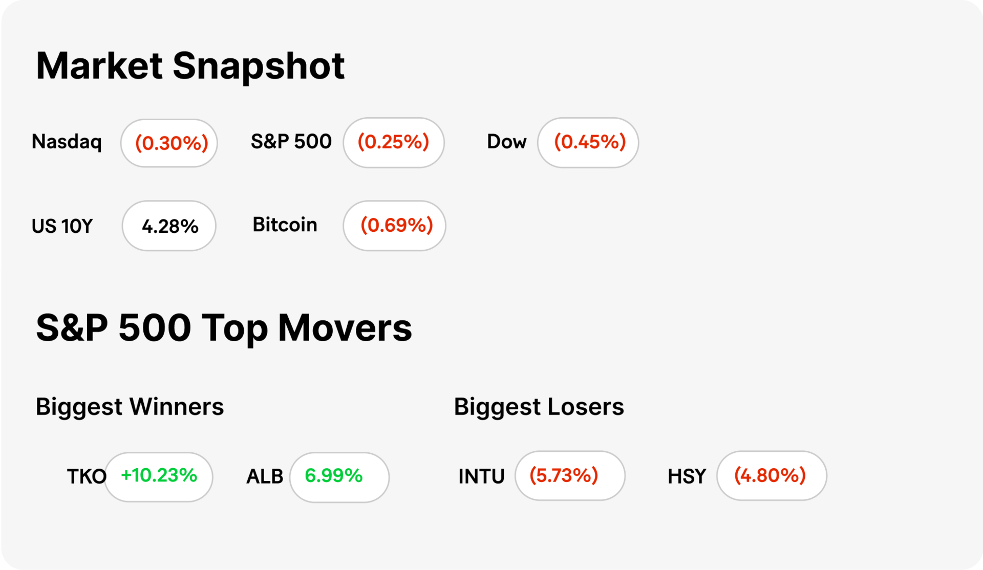 MARKET RECAP → Stocks fell Monday ahead of key US inflation data due out later this week. Bitcoin (BTC) continued to hover around all-time highs, ending the day around ~$118K.
