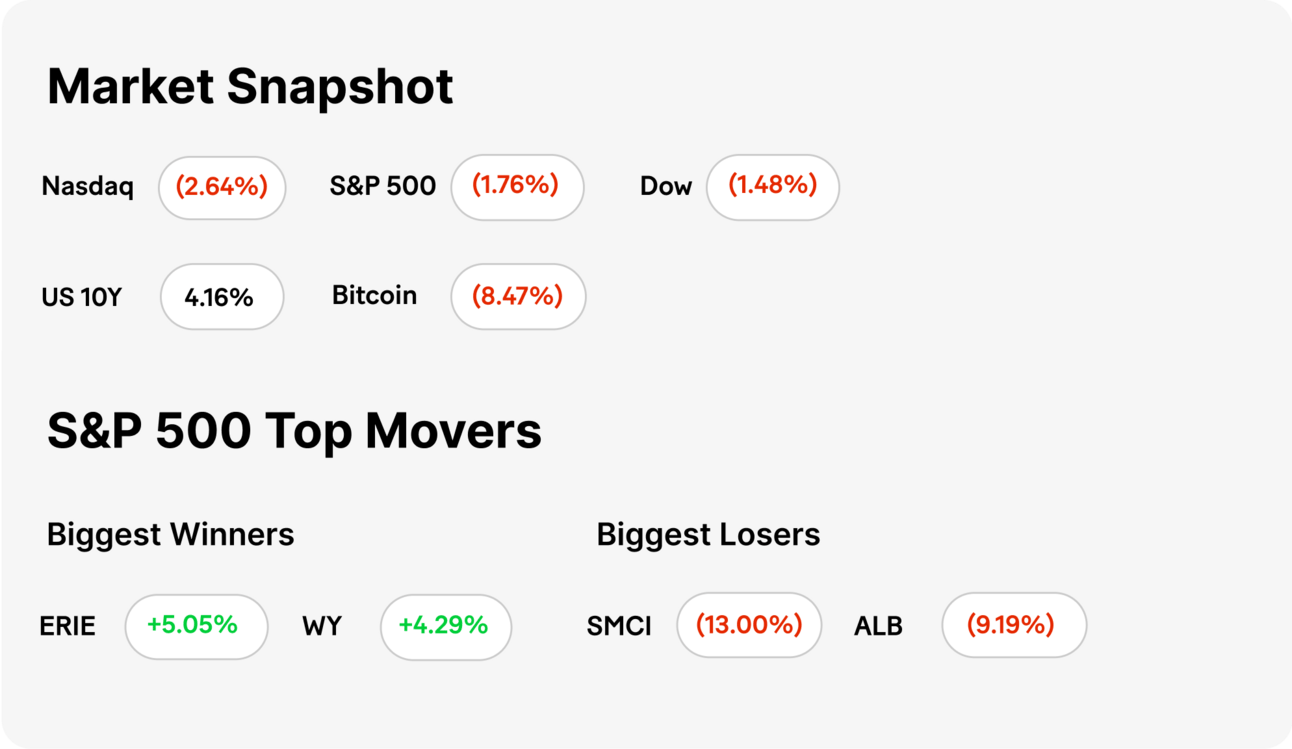 MARKET RECAP → The S&P 500 (VOO) dropped Monday, extending February’s slump and turning negative for the year as Trump’s tariff confirmation heightened economic worries.
