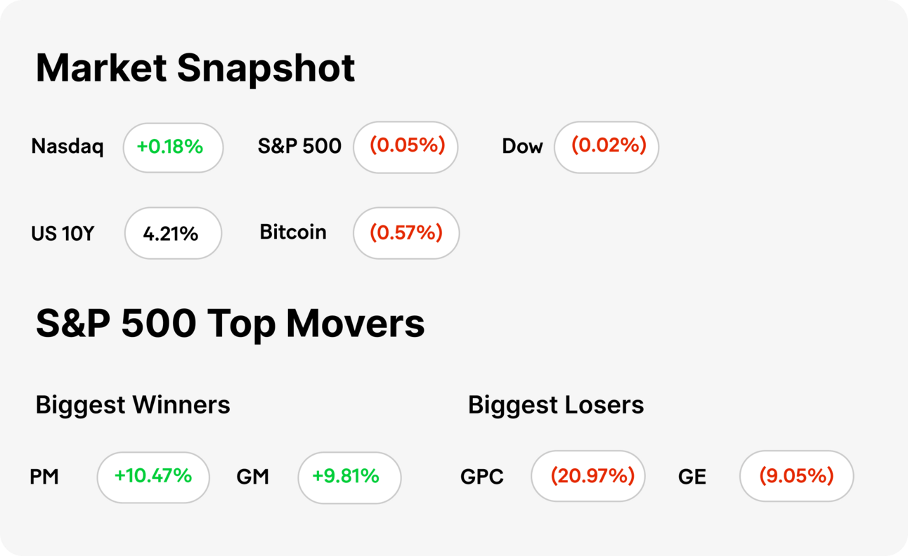MARKET RECAP → Stocks edged up slightly on Tuesday, recovering from earlier losses as investors weighed ongoing concerns about rising interest rates while sifting through this week’s earnings reports.