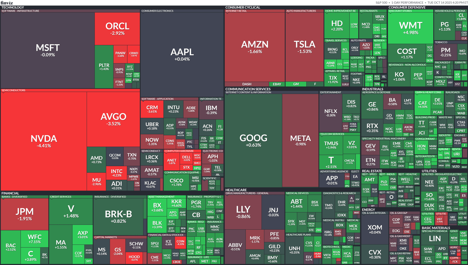 💬 Rates still in limbo. Powell offered no explicit guidance on the path of interest rates, emphasizing data dependence while noting inflation has cooled and labor markets are “normalizing.” Futures now price in higher odds of a December rate cut.