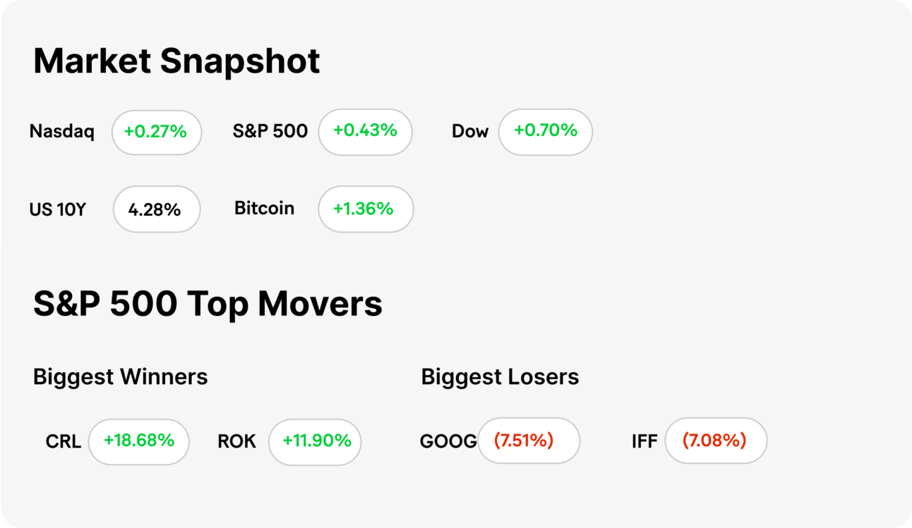 MARKET RECAP → The S&P 500 (VOO) edged higher in a volatile session after the Federal Reserve flagged rising risks of both an economic slowdown and persistent inflation.