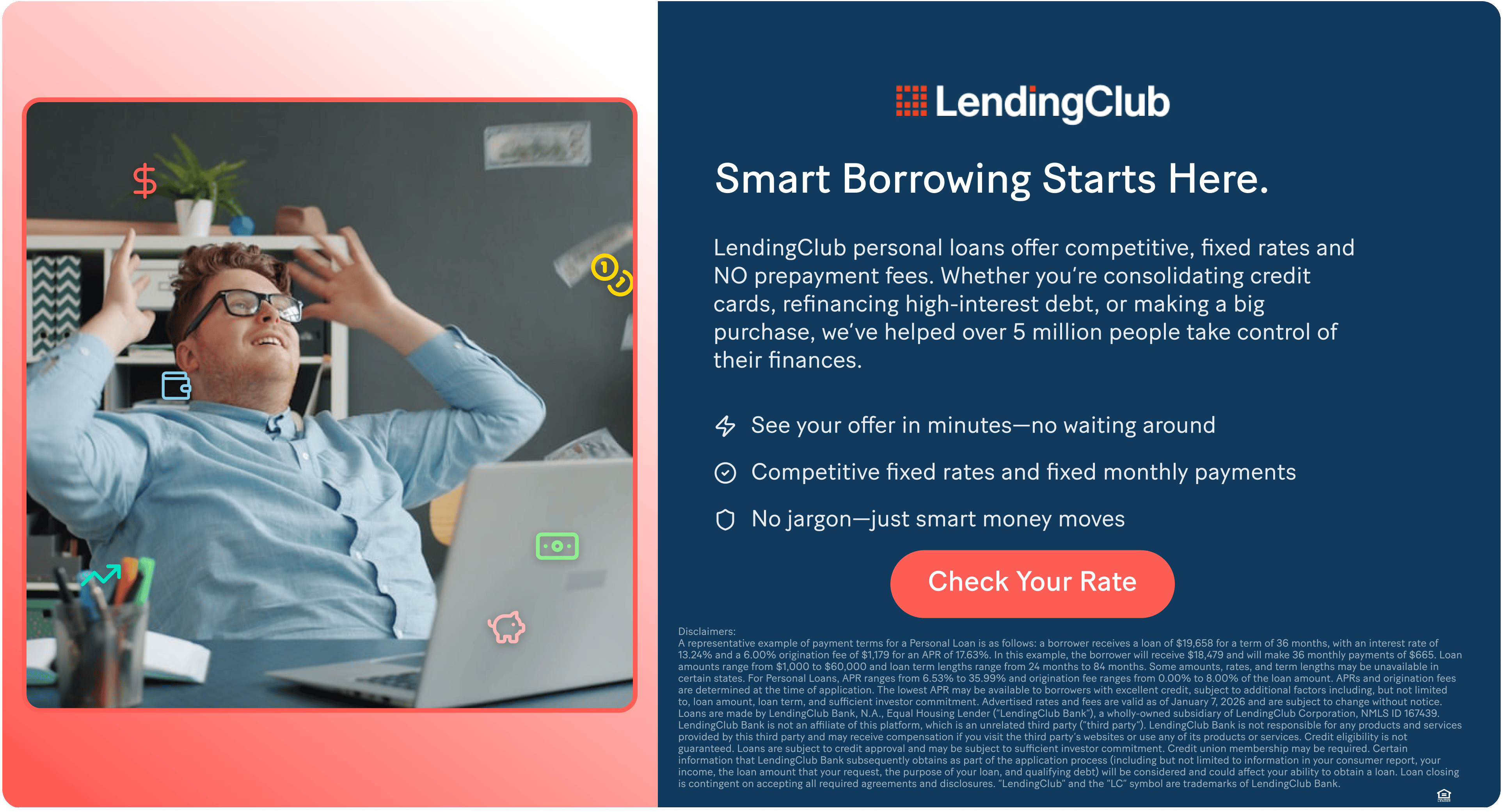 MoneyLion and Pathward do not provide, nor do they guarantee, any third-party product, service, information, or recommendation. The third parties providing these products or services are solely responsible for them, as well as all other content on their websites. MoneyLion is not liable for any third party’s failure with regard to those advertised products, services, and benefits. These advertised products and services may not be FDIC insured or bank-guaranteed, and may be subject to a different privacy policy than MoneyLion’s. You should check individual offers, products, and services to become familiar with any applicable restrictions or conditions that may apply. MoneyLion may receive compensation from third parties for referring you to the third party, their products or to their website.