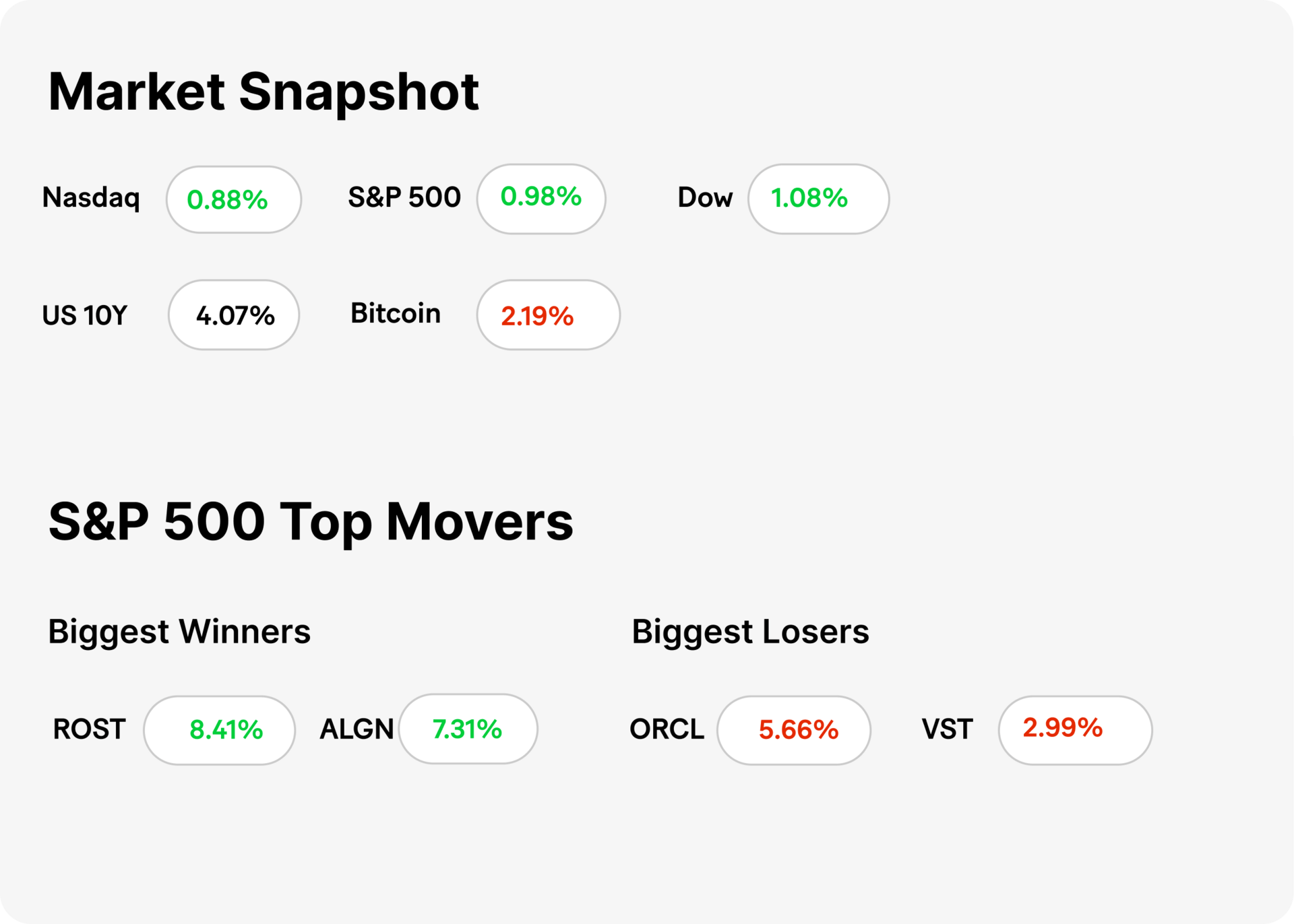💚 MARKET RECAP → Stocks rebounded Friday as New York Fed President John Williams suggested another rate cut might be on the table before year end.