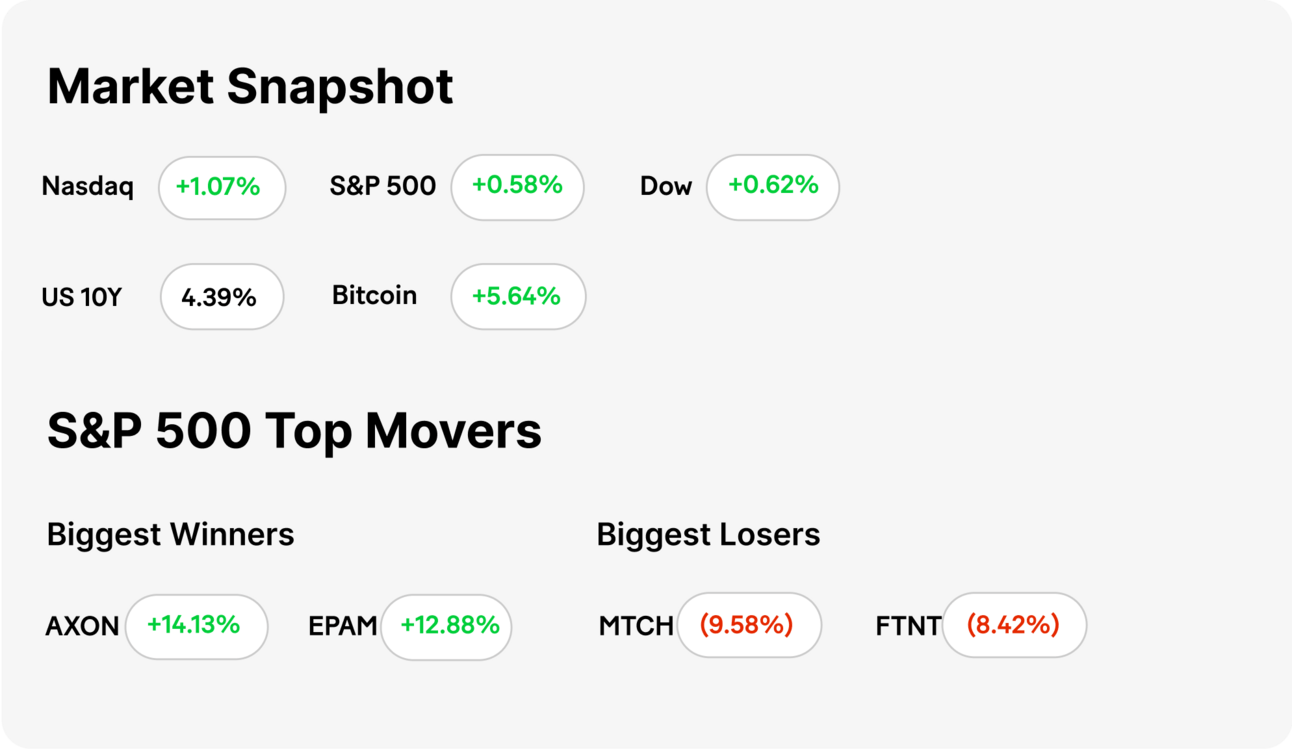 MARKET RECAP → Stocks climbed Thursday after President Donald Trump unveiled a trade deal framework with the U.K. — marking the first major pact since the U.S. rolled out sweeping pre-emptive tariffs across global markets earlier this year.