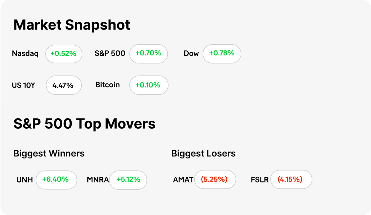MARKET RECAP → The S&P 500 (VOO) rose Friday, capping its fifth straight gain and a strong week, as investors shrugged off weak consumer sentiment and lingering inflation concerns.