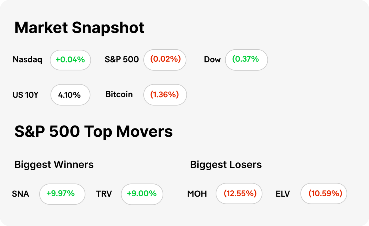 MARKET RECAP → Stocks climbed on Thursday, driven by gains in semiconductor stocks, while strong economic data helped ease lingering fears of a potential recession.
