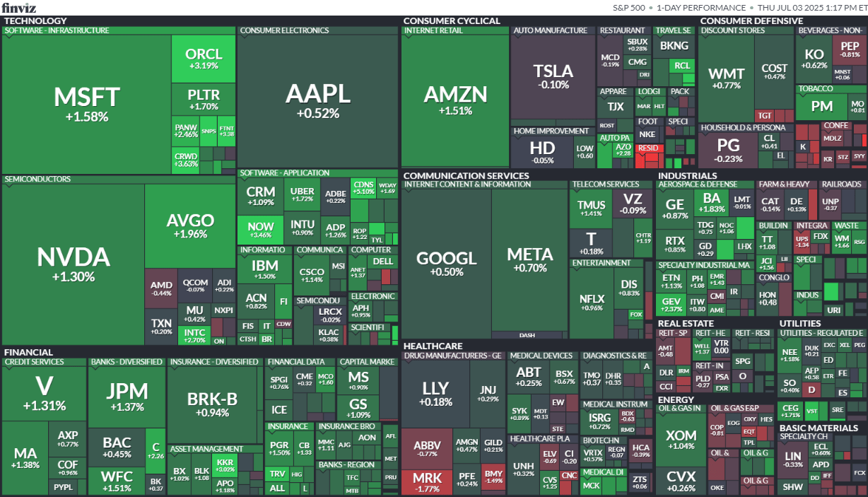 MARKET RECAP → Markets on Thursday increased with fresh record highs being set. The growth was fueled by a new job report release creating optimism in the U.S. economy, despite recent geopolitics and rapid updates trade policy.
