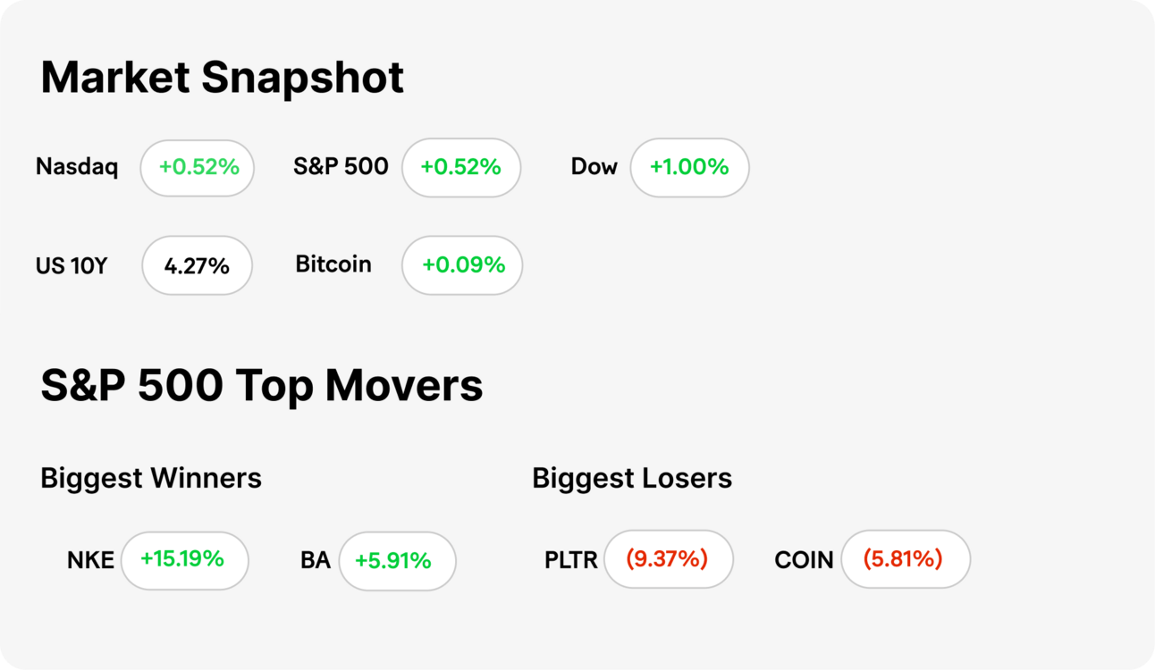 COINBASE LEADS THE S&P 500 → Coinbase (COIN) is the S&P 500’s top stock for June, up 30 percent and 400 percent year to date. Analysts still see more upside as crypto trading surges and Coinbase branches into broader financial services.