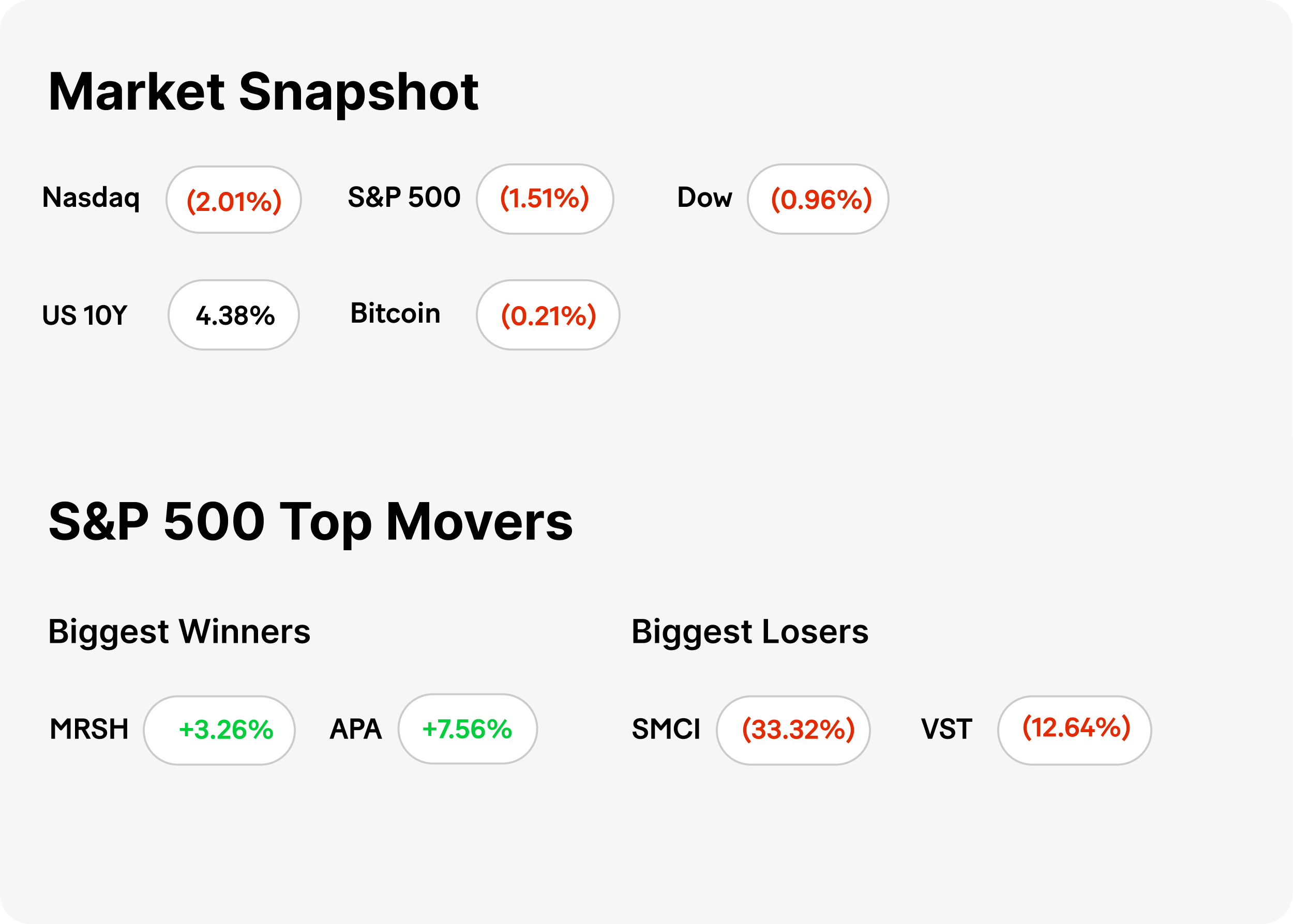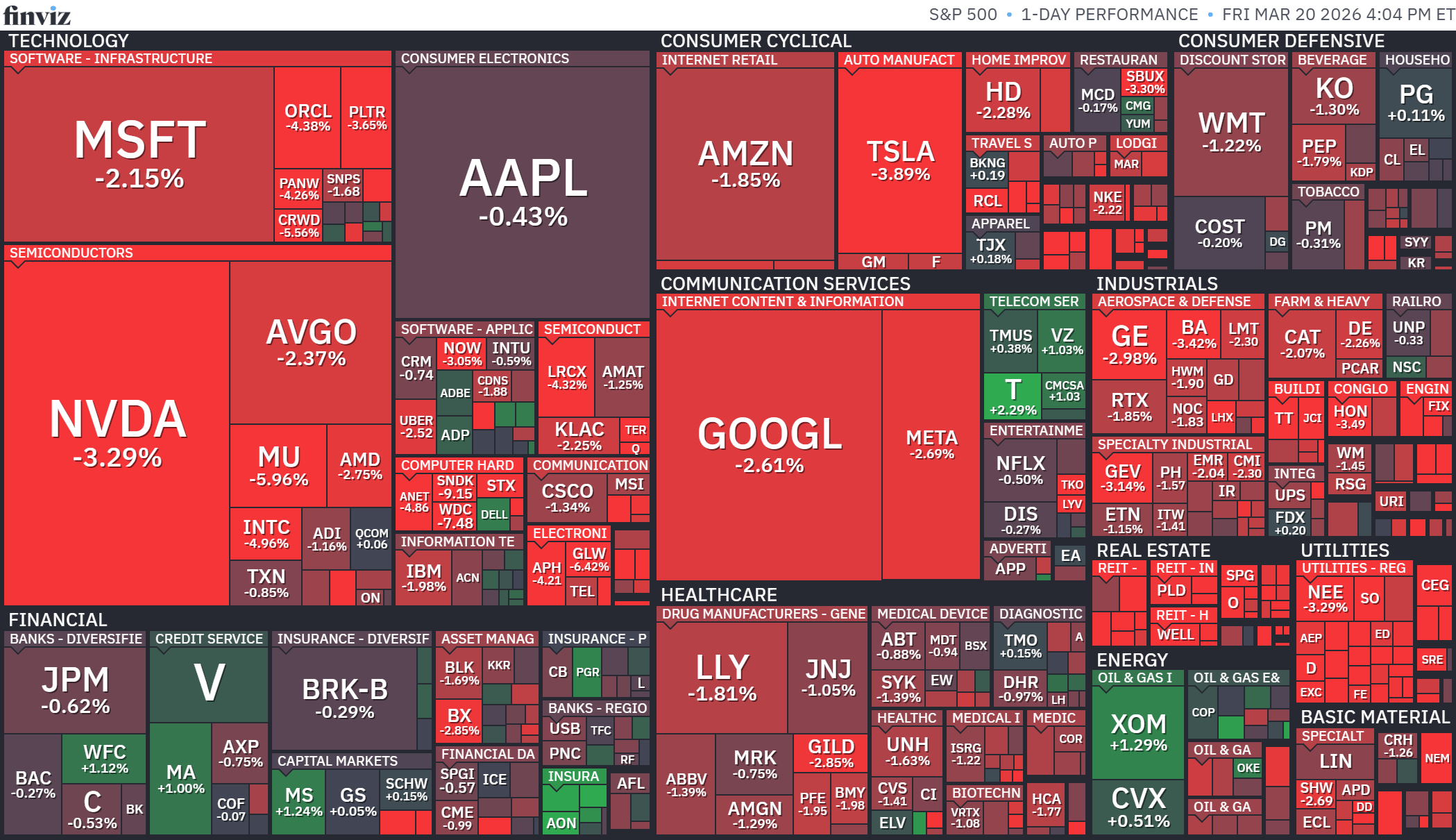 ⚡ MARKET RECAP → Stocks fell Friday as all three major indexes clocked another losing week, exacerbated by the Iran war.