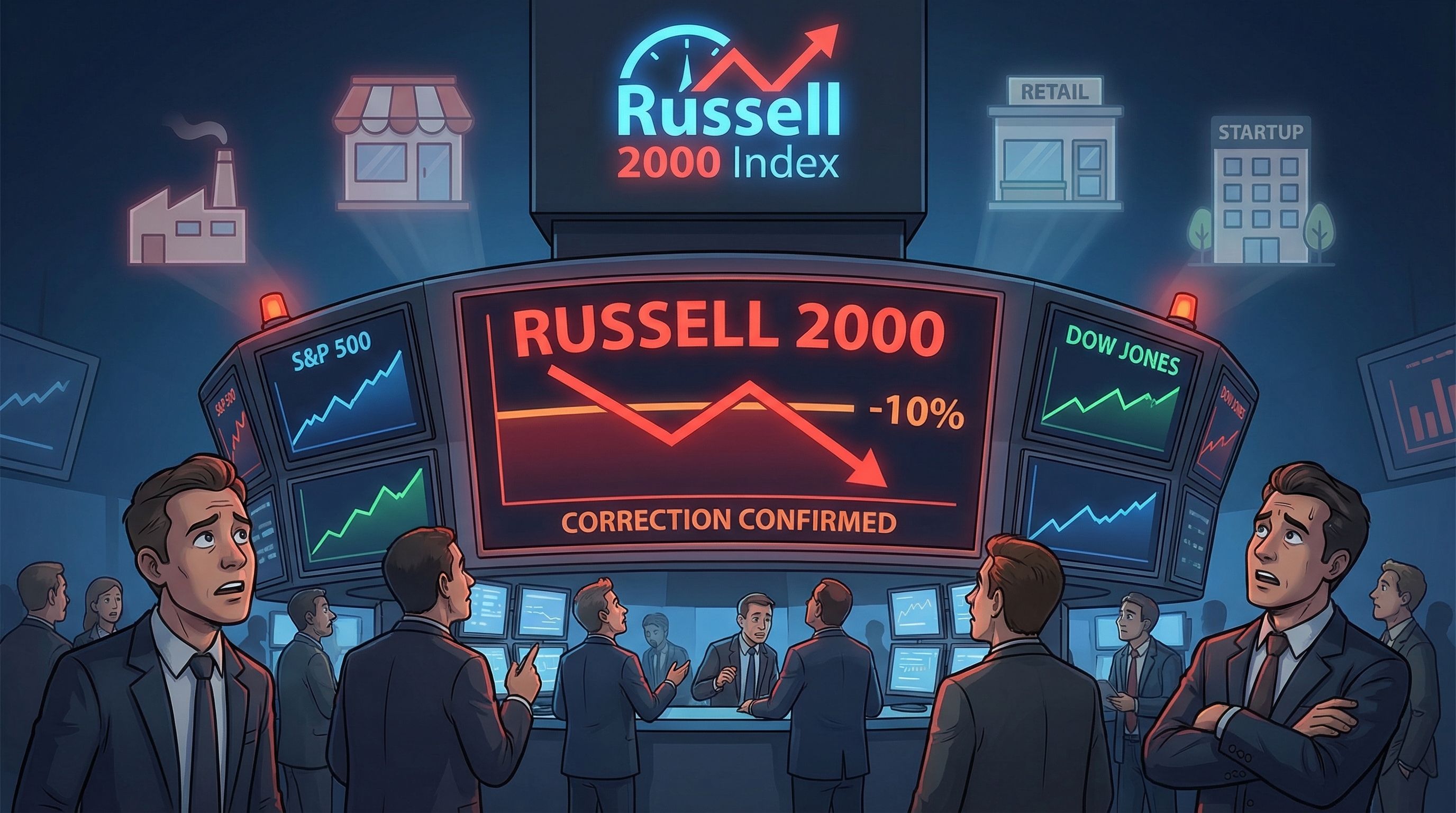 📉 SMALL CAPS SLIP INTO CORRECTION → The Russell 2000 has fallen into correction territory, reflecting pressure from higher rates and tighter financial conditions — and potentially signaling broader economic stress as investors pull back from smaller, more vulnerable companies.