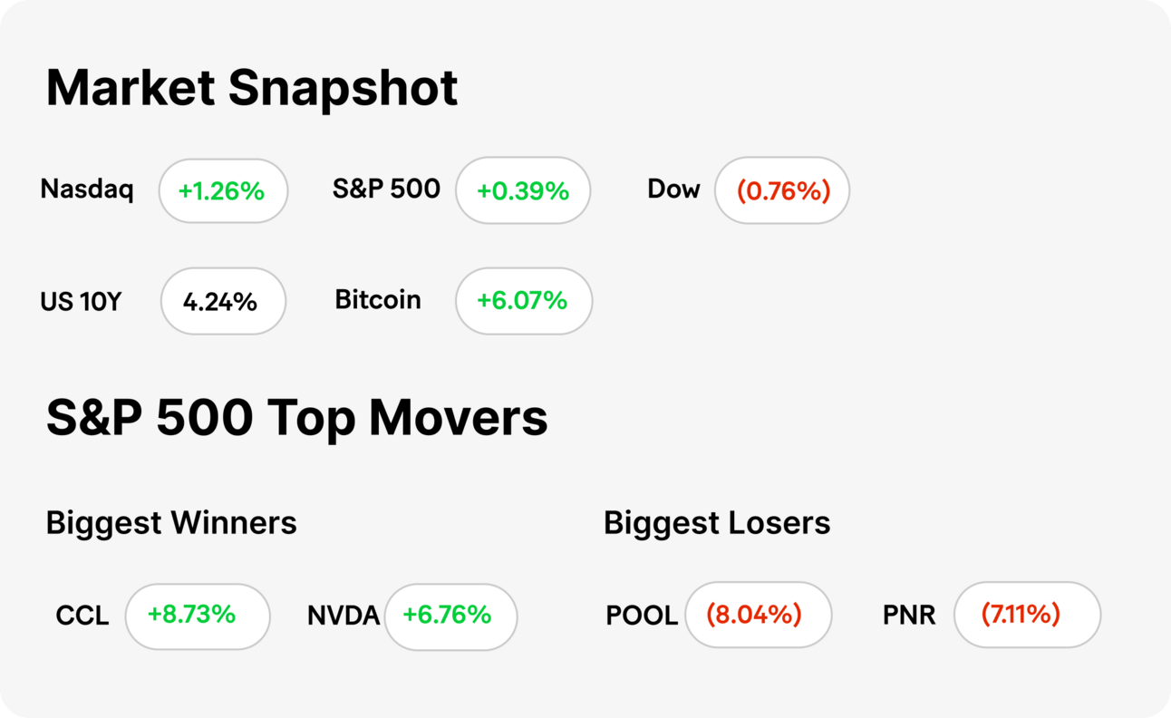 MARKET RECAP → Stocks rose on Tuesday, led by a rebound in shares of AI chipmaker Nvidia (NVDA).