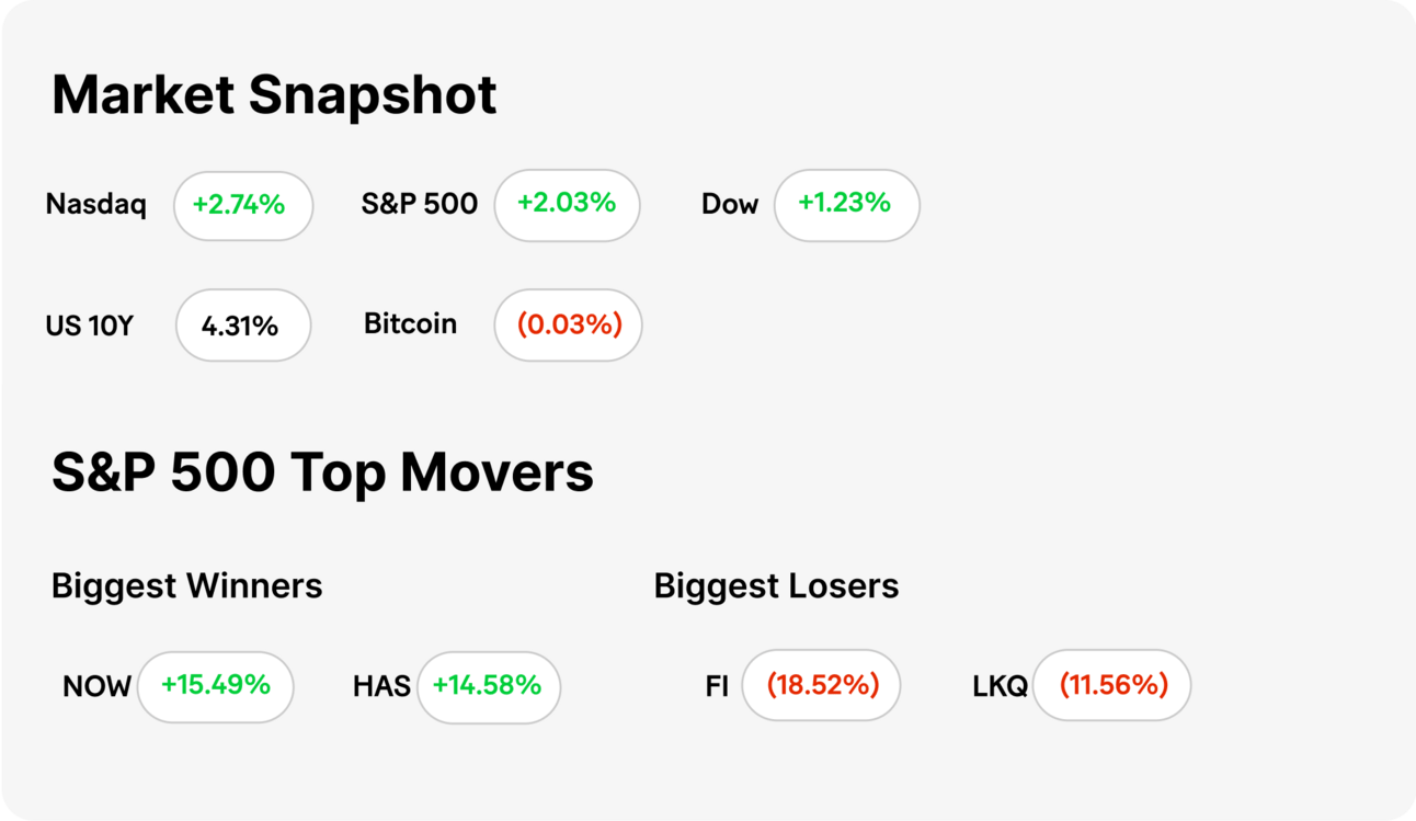 MARKET RECAP → Stocks jumped Thursday, led by megacap tech gains, as investors held out hope for momentum on global trade developments.