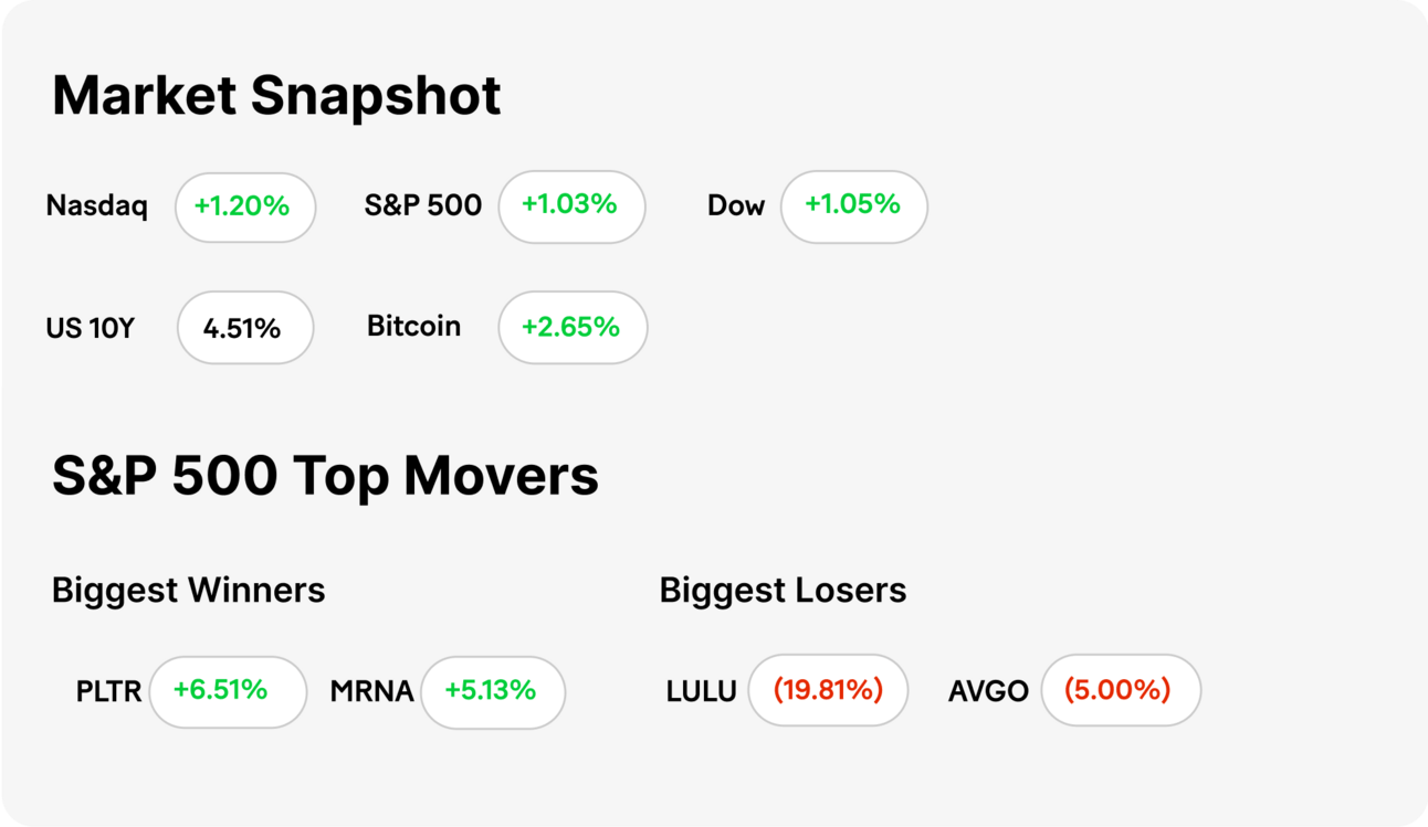 MARKET RECAP → Stocks popped on Friday as the latest jobs report came in better than expected.