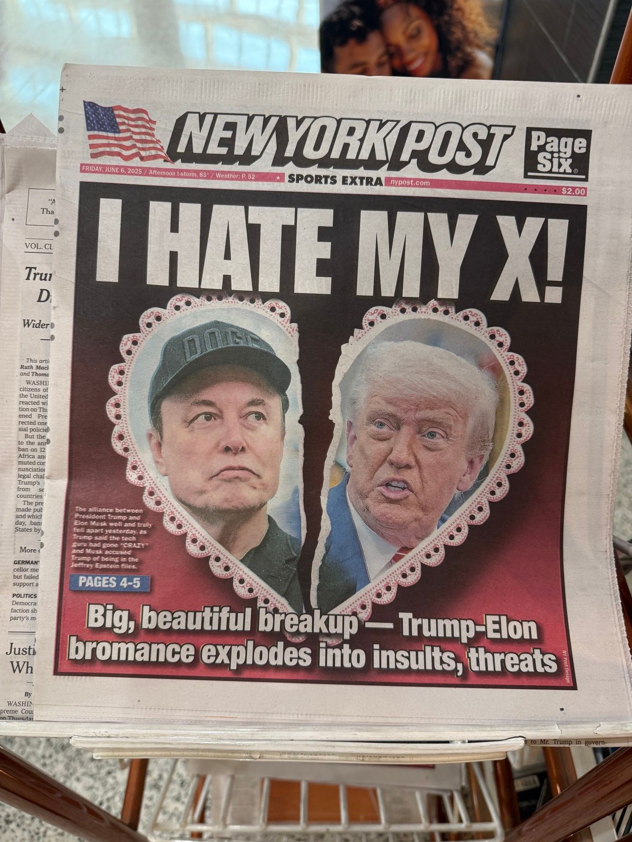 TRUMP SNUBS MUSK CALL REQUEST → 📵 Trump iced out Elon Musk after a public feud over tax policy and federal contracts, saying he’s “not even thinking about Elon” as their billionaire bromance officially entered the ghosting phase.